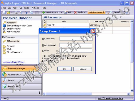Efficient Password Manager 不但可幫助您記住一般的密碼資料,而且還能紀錄網站登