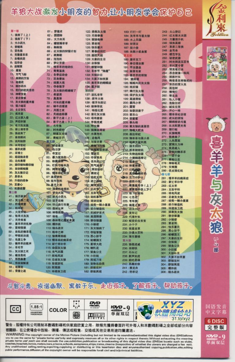 片名:喜羊羊與灰太郎 第1-7部 04 189-240集 國語發音 80%繁體中文+20%簡體中文語言字幕