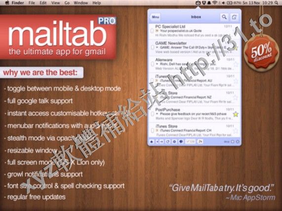 MailTab Pro for Gmail v7.1 MacOSX 英文正式版(最好的Gmail蘋果客戶端多功能多賬號軟體)